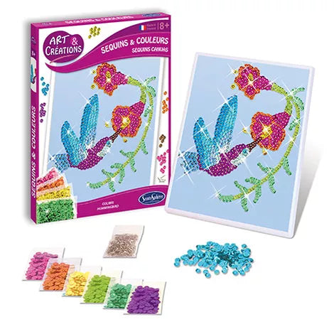 Šie kolibriai sublizgės tūkstančiu spalvų dėka 6 spalvų blizgučių, kuriuos rasite šioje stebuklingoje dėžutėje. Galėsi pagaminti spinduliuojančius ir įvairiaspalvius paveiksliukus iš daugybės blizgučių, kuriuos reikia pritvirtinti su smeigtukais prie specialios kartoninės lentutės. Tai ypatingai smagi ir kūrybinga veikla kurianti daug blizgesio ir džiugesio