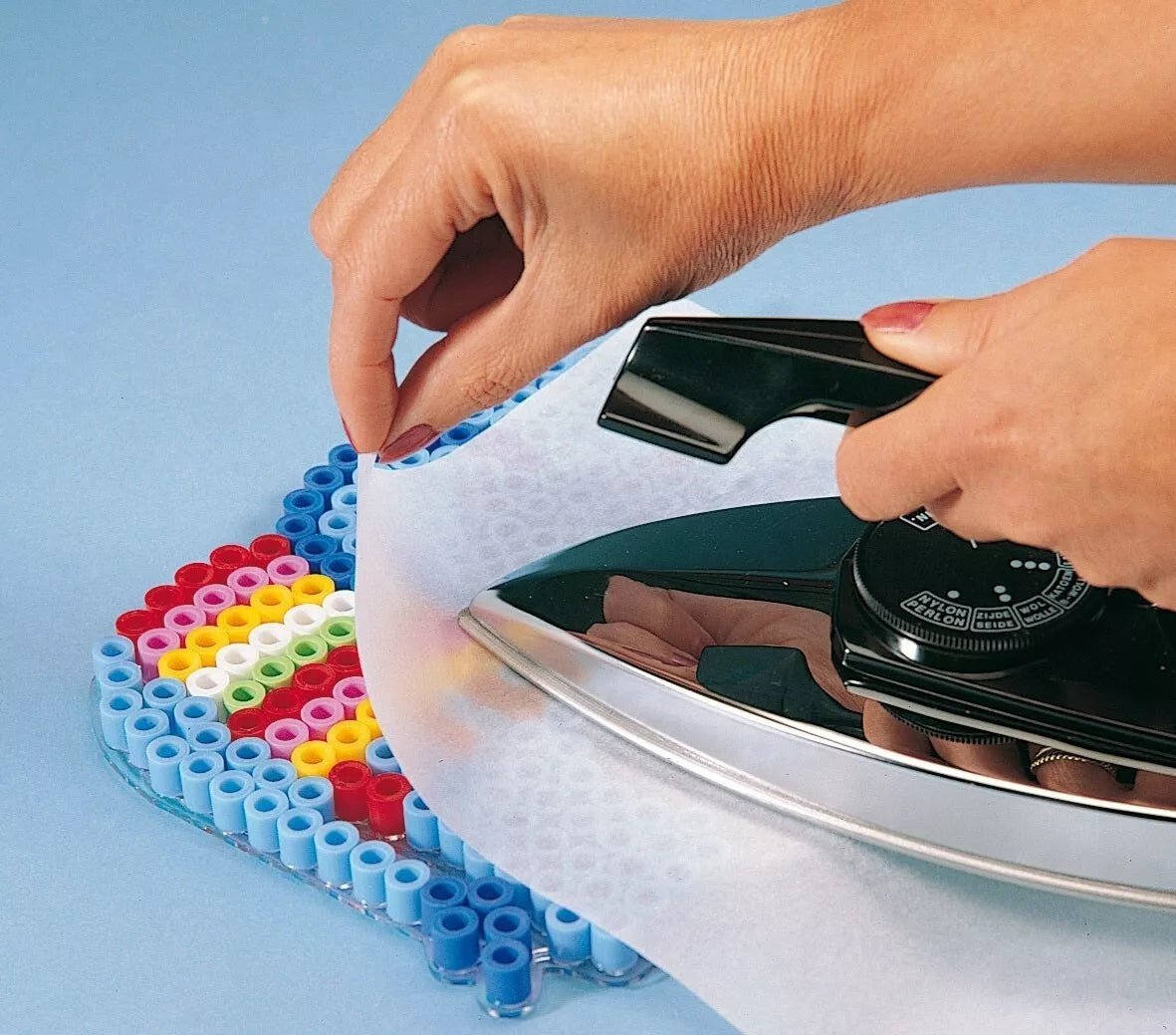 Į šį rinkinį dėliojimo lentelė neįeina, todėl rekomenduojame ją įsigyti čia: Hama MAXI dėliojimo lentelė