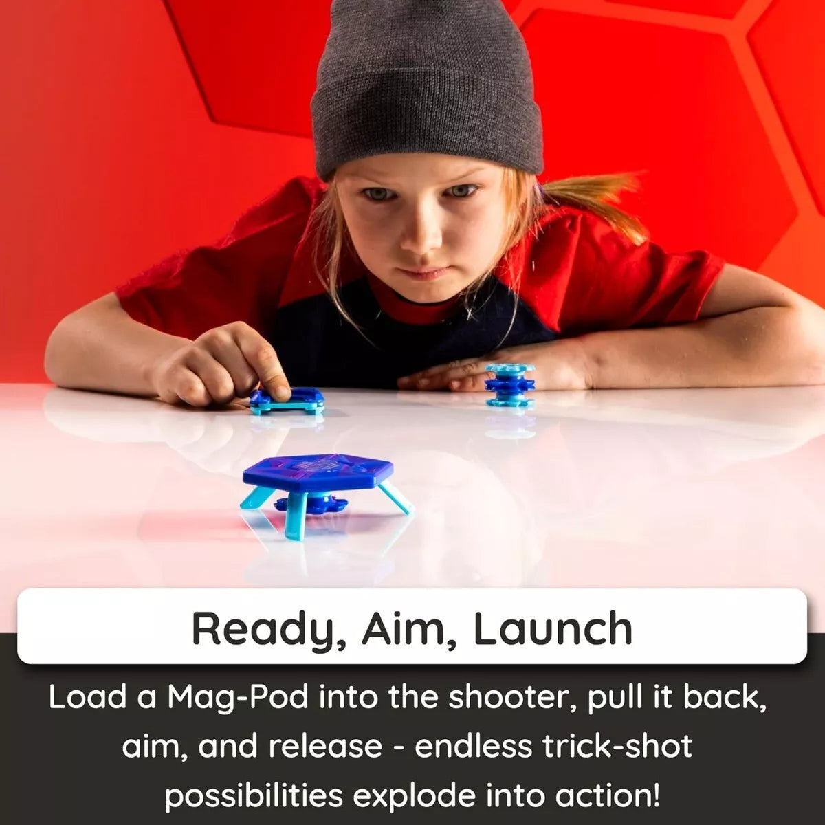 • Magnetinė sistema: Specialūs magnetai, integruoti į „Mag-Pod“ kapsules, tvirtai prilimpa prie „Mag-Module“ taikinio, o sėkmingą šūvį patvirtina malonus kliktelėjimas.