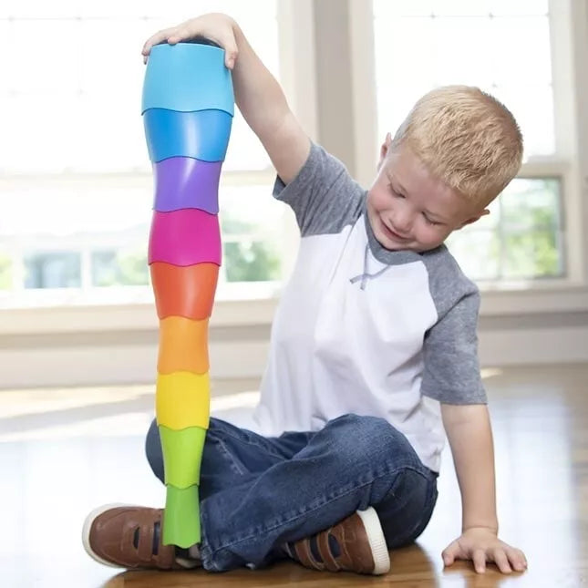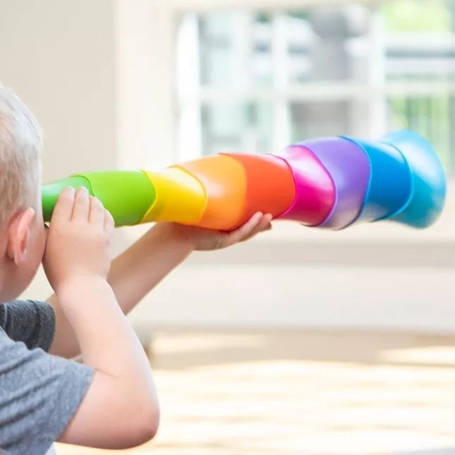Spiroku neabejotinai padovanos naują statymo patirtį. Neįprastų formų cilindrus kraukite taip, kaip norisi. Ryškios spalvos ir unikalūs kontūrai įkvėps ilgiems statymo ir kūrybiniams žaidimams. Pabandykite juos sudėti vieną į kitą pagal dydį ir tada trūktelėję už mažiausio pasiruoškite nustebti! Turite ilgą bokštą :) Žaisdami vaikai lavins smulkiąją motoriką, kūrybingumą, vizualinį erdvės suvokimą. Spiroku susideda net iš 9 skirtingo dydžio cilindrų. Didžiausio cilindro skersmuo apie 10 cm. Pagamintas iš aukštos kokybės plastiko (be BPA).