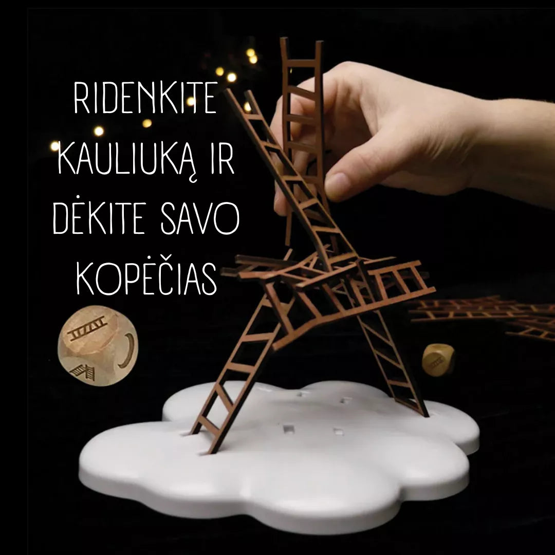 Lipkite kopėčiomis aukštyn ir pasiekite mėnulį! Tereikia kelių sumaniai pastatytų kopėčių, tvirtos rankos ir šiek tiek vaizduotės. Ridenkite kauliuką, statykite kopėčias tokia tvarka, kaip pavaizduota ant kauliuko (kopėčios turi liesti kitas kopėčias, arba kitas dvi kopėčias ir t.t.). Kuo daugiau kopėčių, tuo žaidimas taps labiau nenuspėjamas.